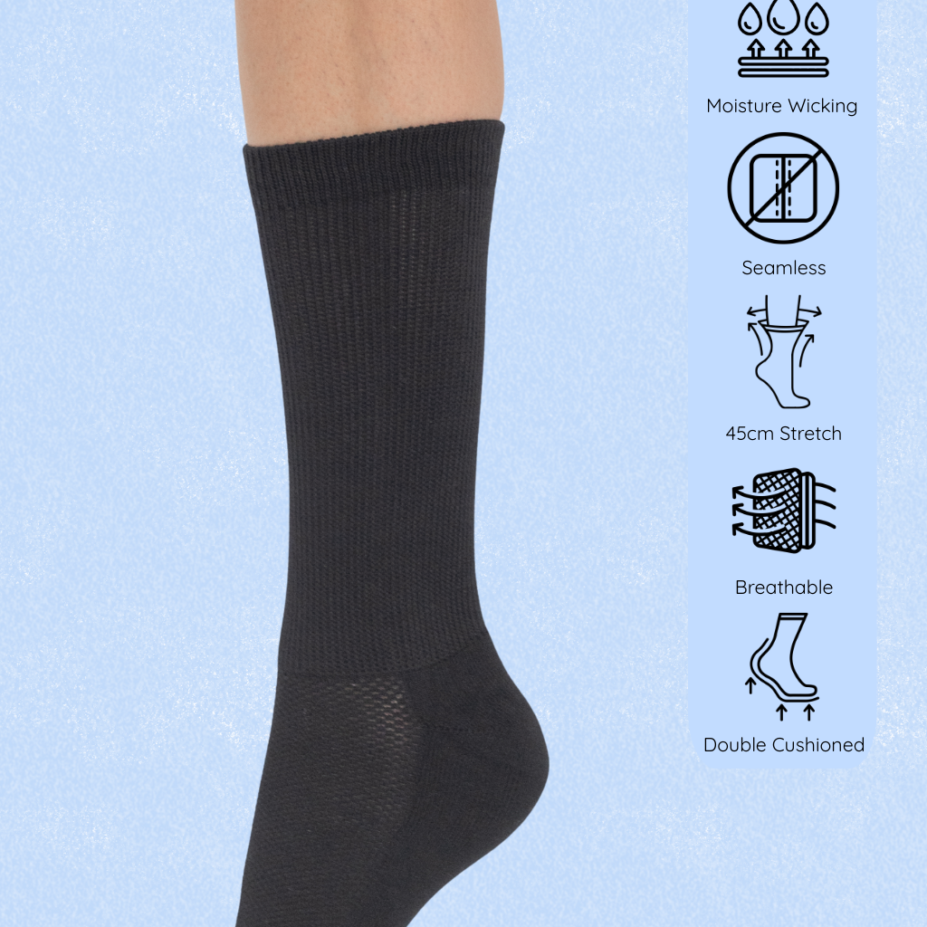 This is your new daily sock, with the added benefits of soft double cushioning hugging the bottom of your feet.