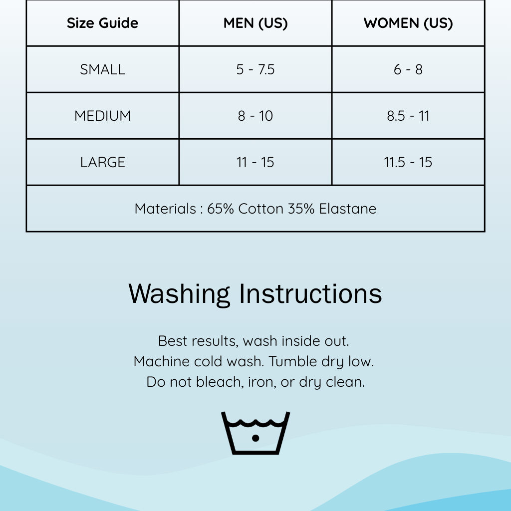Cotton (65%) is a breathable fabric that keeps feet cool and dry. It also absorbs sweat, which prevents odours. It's also soft on skin, and provides great ventilation. This makes it an excellent choice for socks. Elastane (35%) is included to improve the elasticity and stretch of the cotton fibres, which ensures that you will have the stretch you need around your foot, ankle and leg.